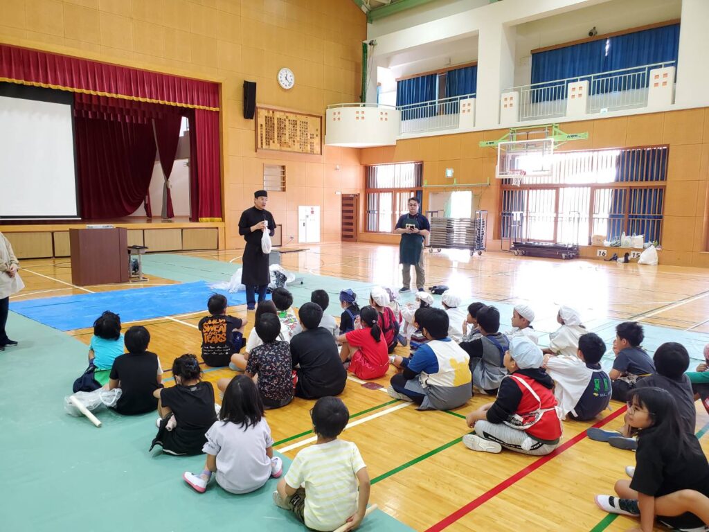 うるま市伊波小学校 手打ち沖縄そば教室