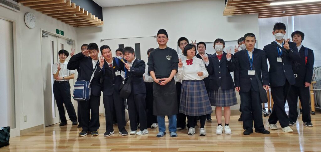広島県の支援高校の修学旅行生を対象に 手打ち沖縄そば体験教室 を開催しました。