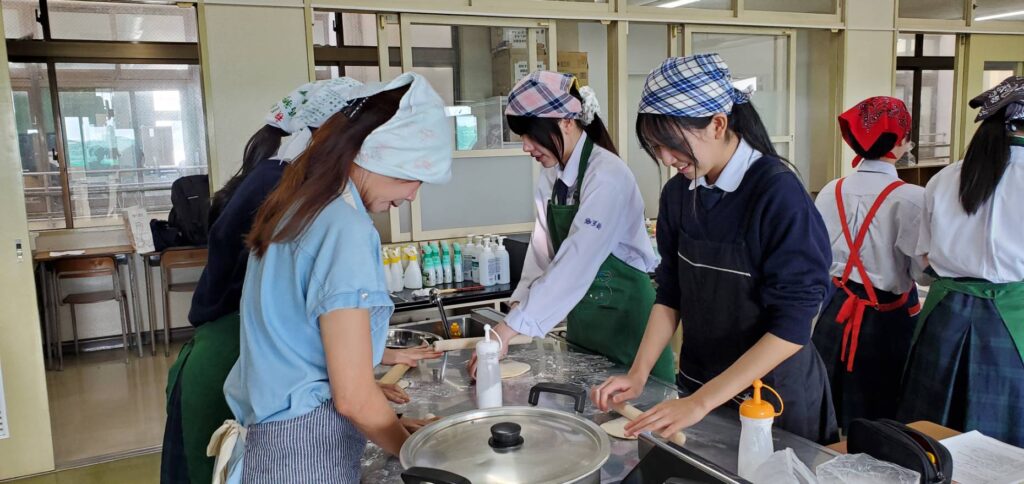 沖縄の食文化である沖縄そばを、実際に手打ち体験しながら学びました。