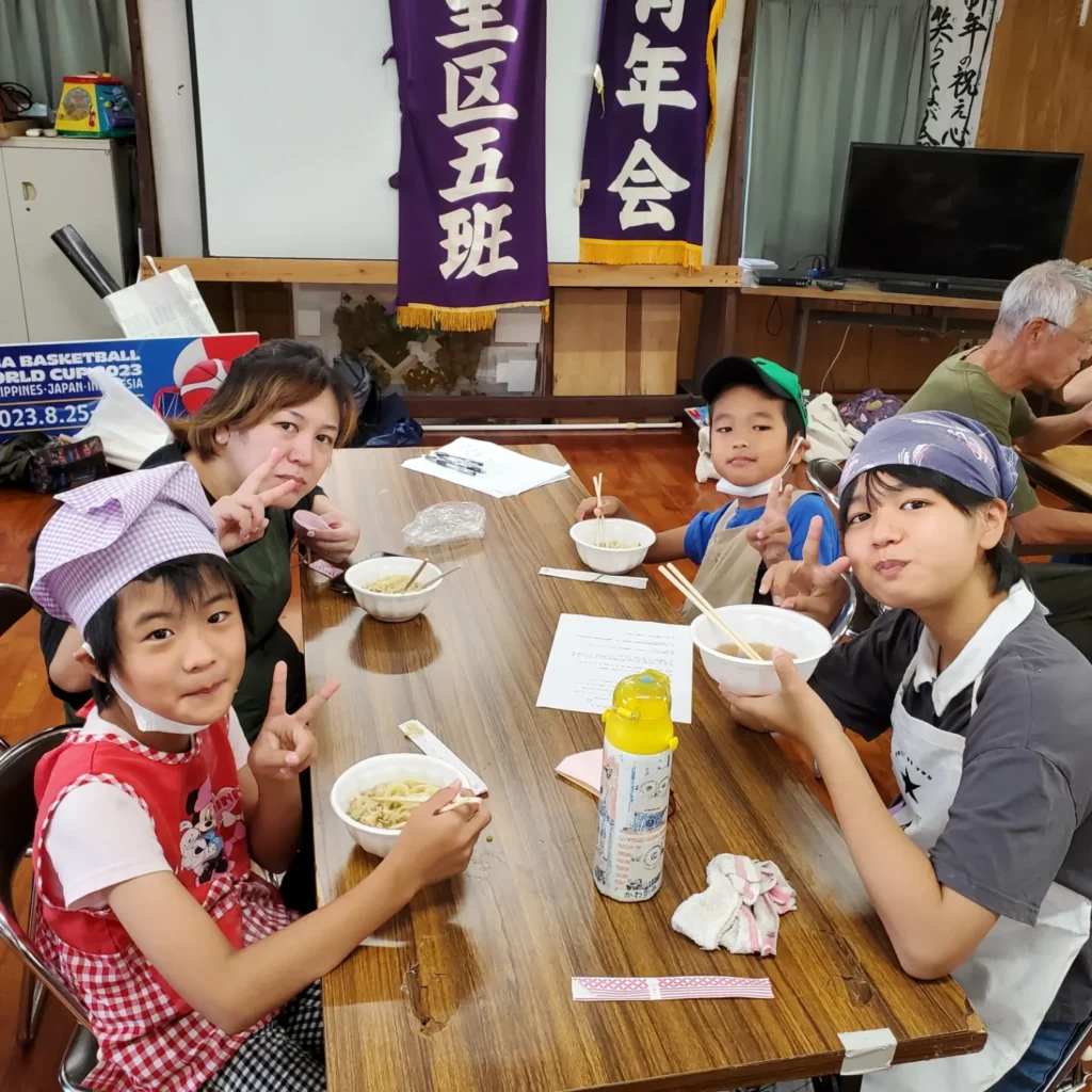地域の公民館に、子どもたちとご家族が集まりました。