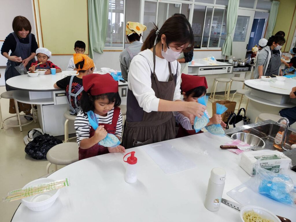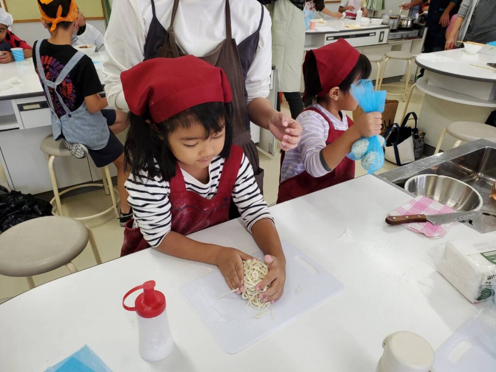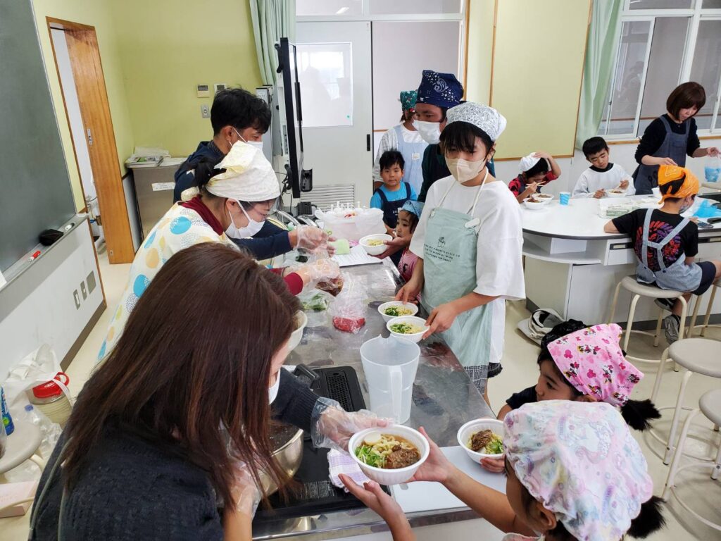 西原町坂田小学校 手打ち沖縄そば教室
