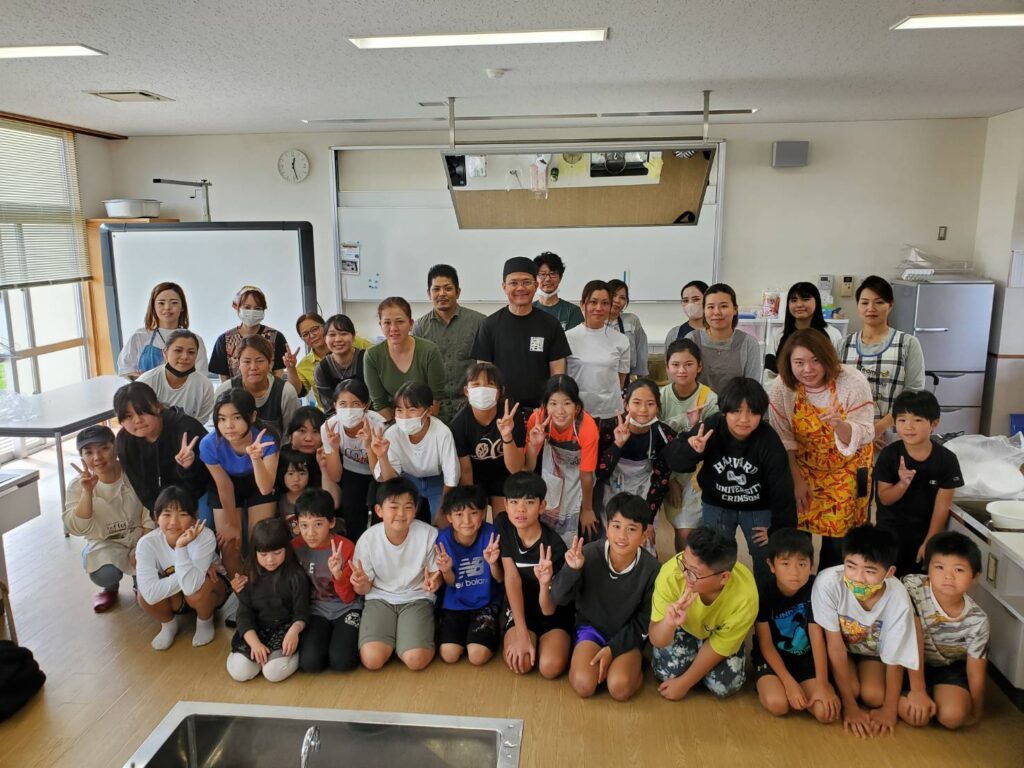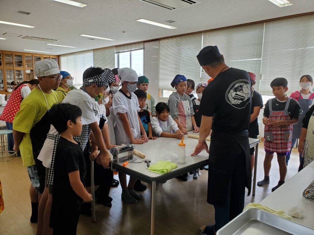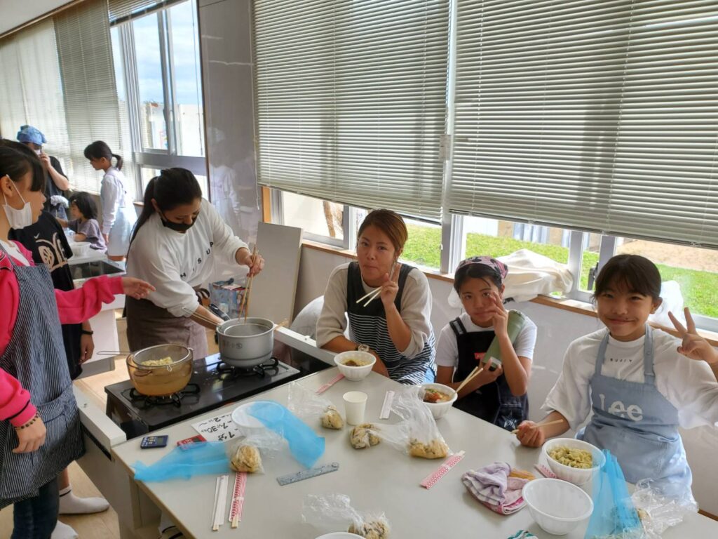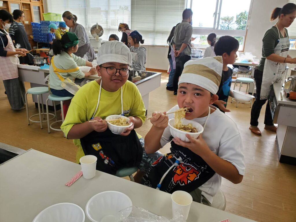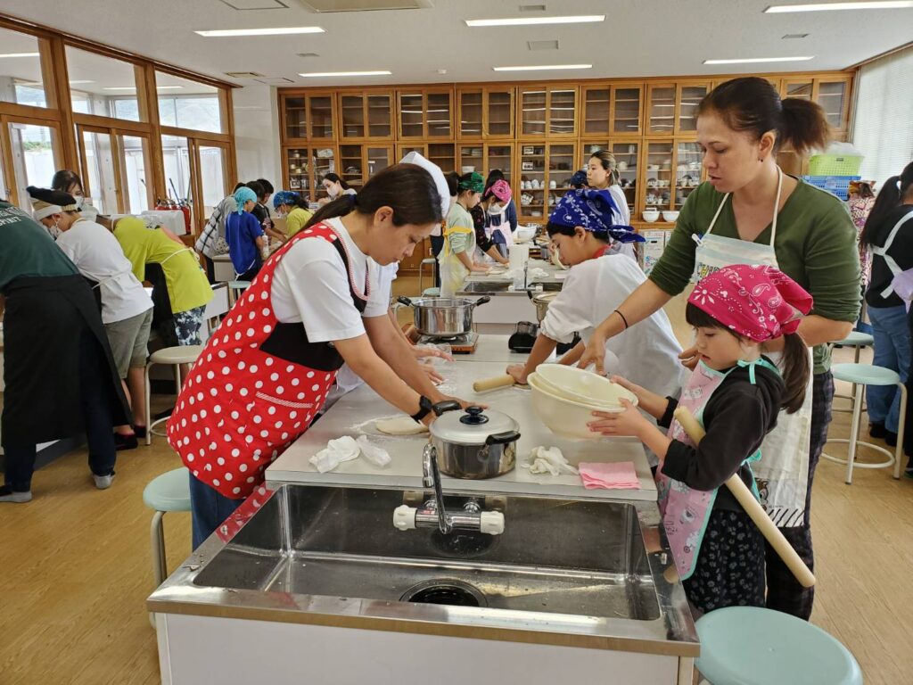 金武町嘉芸小学校 親子 手打ち沖縄そば教室